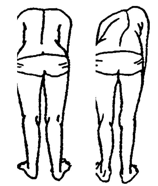 3、雙側肩胛骨不等高或一側隆起