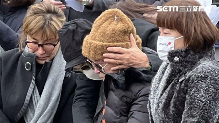 ▲李玟媽媽痛哭失聲,二姐(左)與大姐(右)相擁安慰。(圖/記者鄭尹翔攝影)