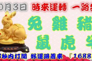 10月3日時來運轉一路發,兔雞豬鼠虎牛,88秒內打開,好運跟著來『16888』