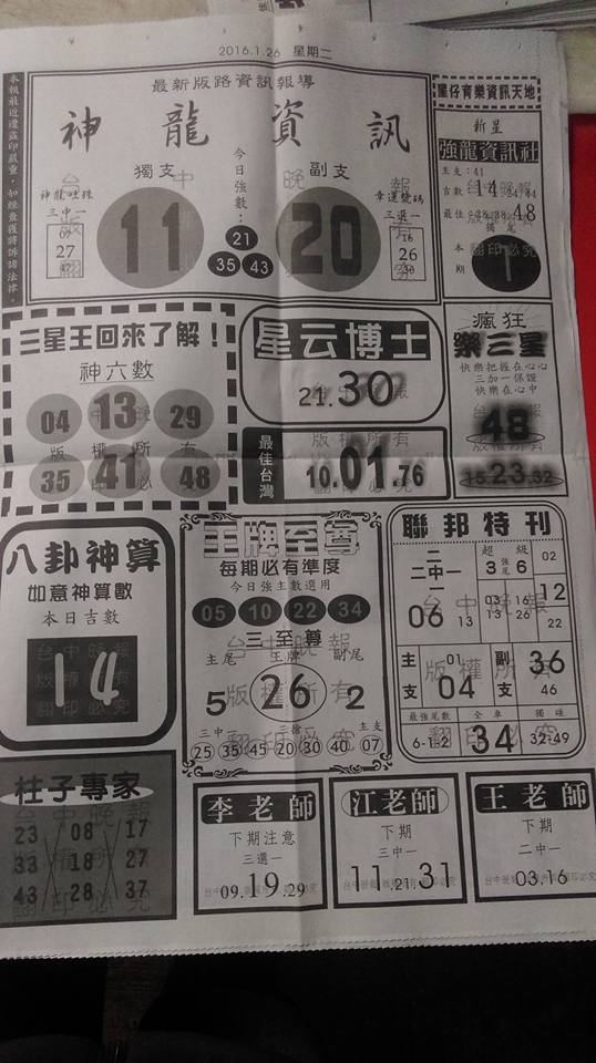 今彩539 2020/10/06 吉祥報分享 供您參考