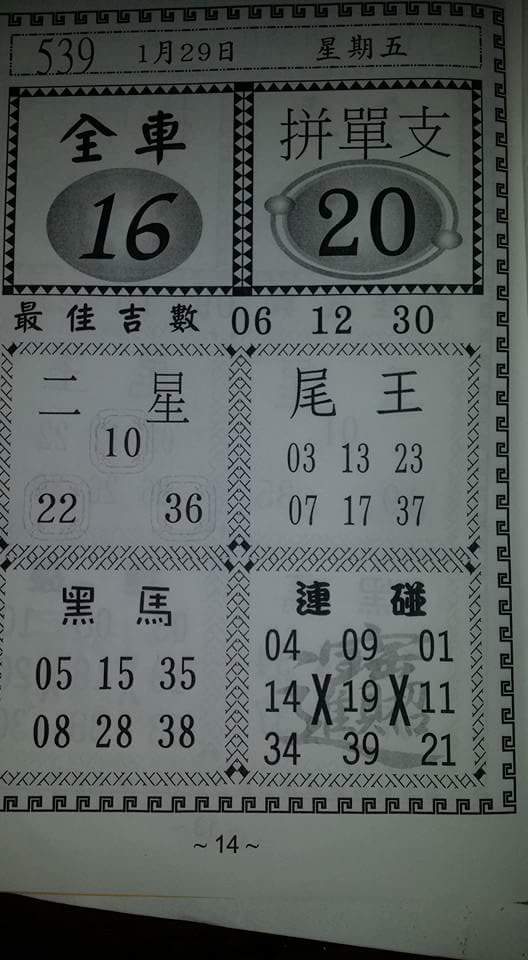 今彩539 2020/10/07 台北鐵報分享 供您參考