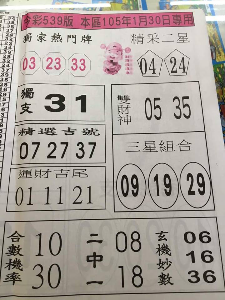 今彩539 2020/10/07 吉祥報分享 供您參考
