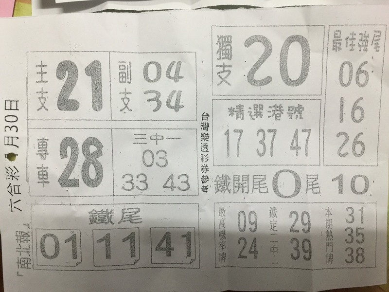 今彩539 2020/10/05 台北鐵報分享 供您參考
