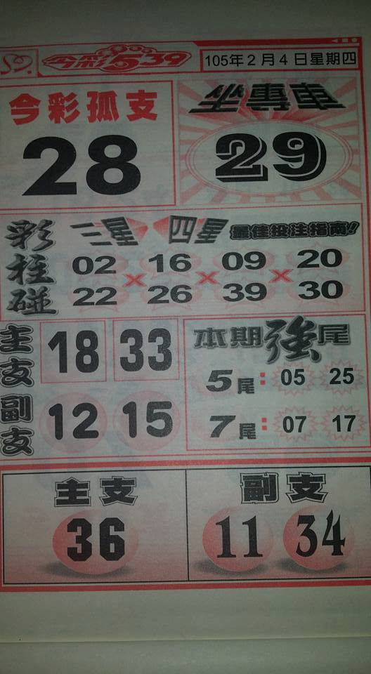 今彩539 2020/10/06 吉祥報分享 供您參考