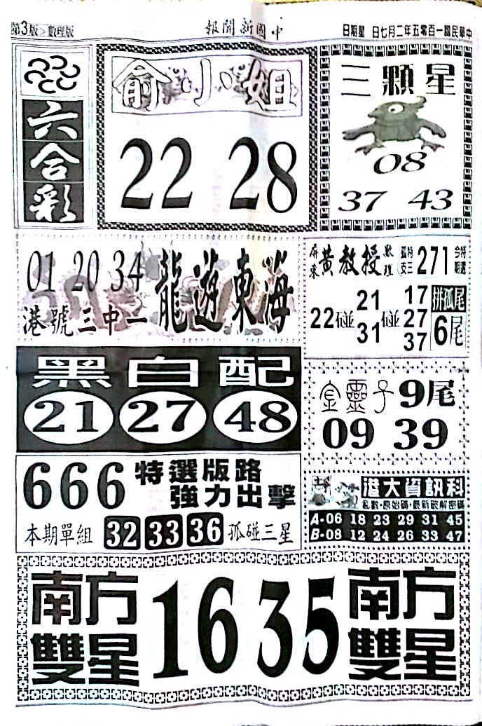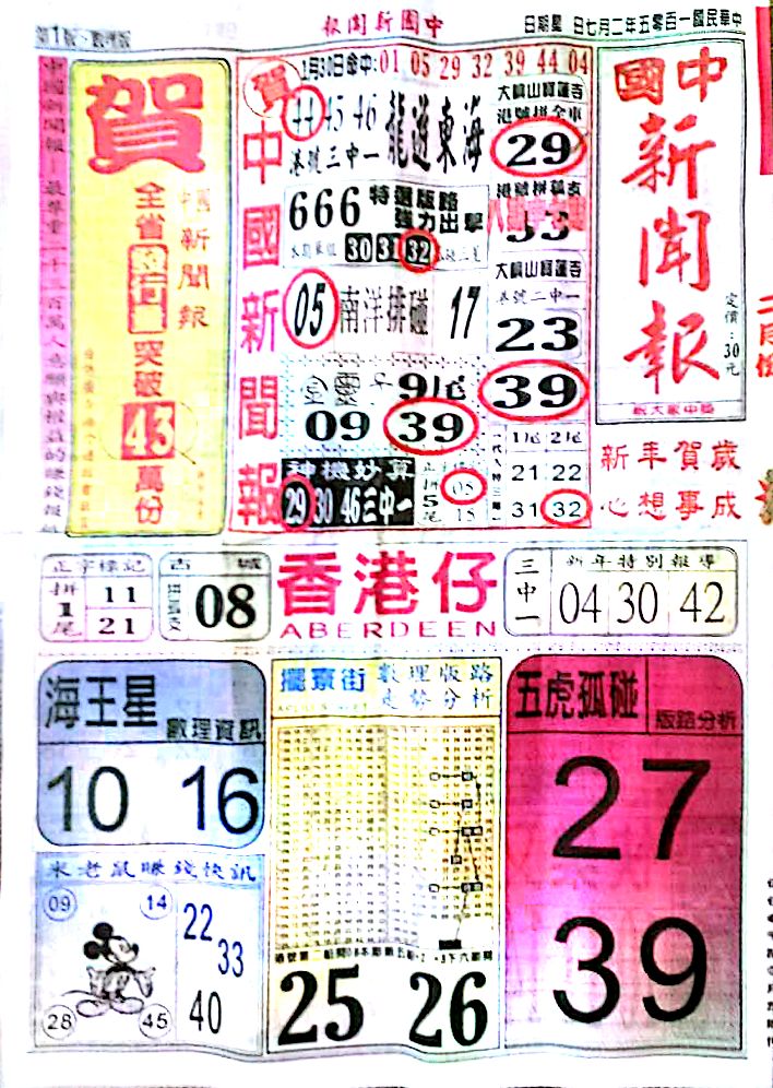 今彩539 2020/10/05 台北鐵報分享 供您參考