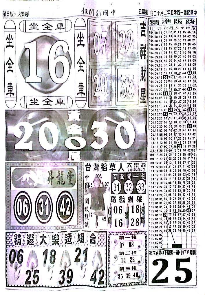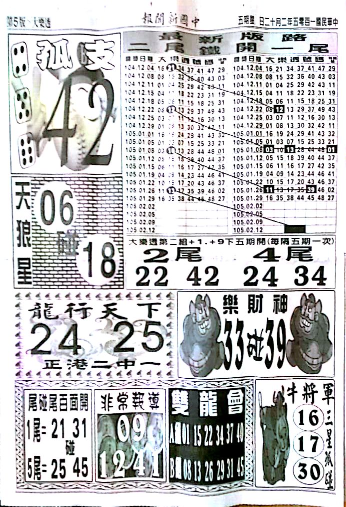 今彩539 2020/10/06 台北鐵報分享 供您參考
