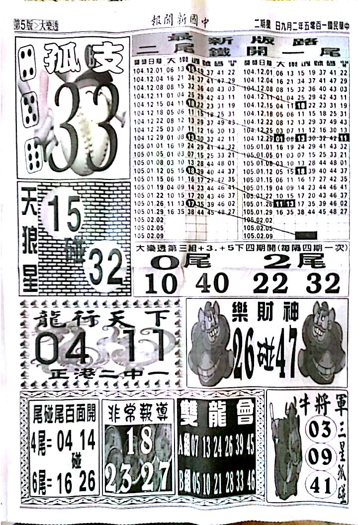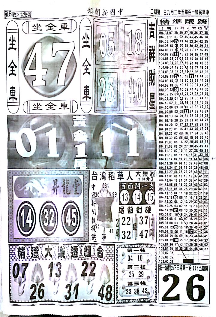 今彩539 2020/10/07 台北鐵報分享 供您參考