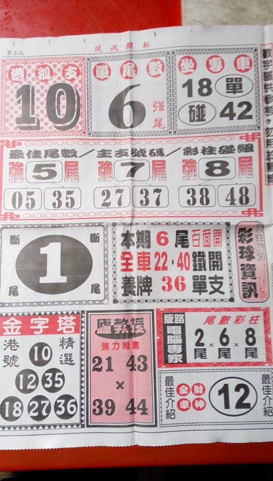 今彩539 2020/10/06 台北鐵報分享 供您參考