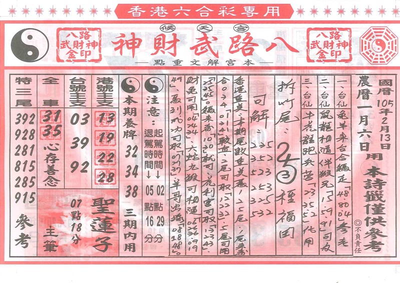 今彩539 2020/10/06 吉祥報分享 供您參考