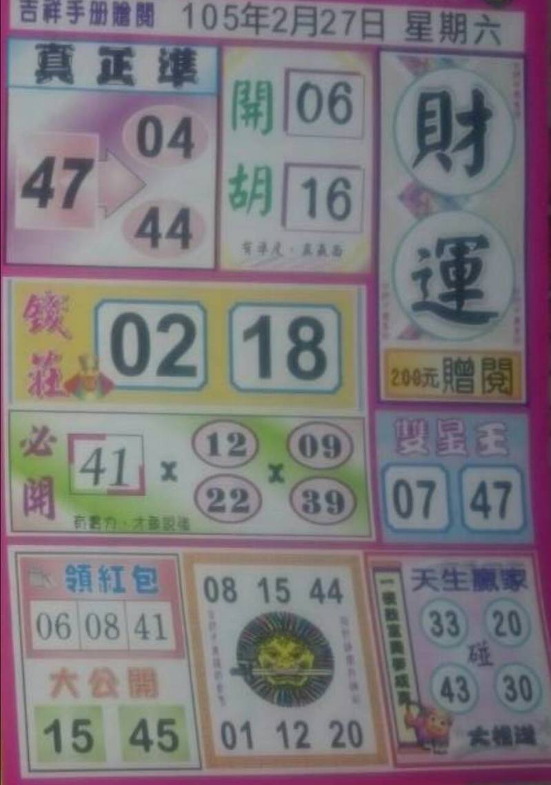 今彩539 2020/10/07 台北鐵報分享 供您參考