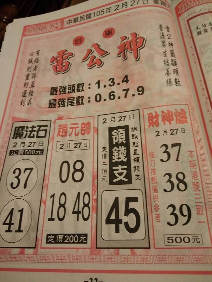 今彩539 2020/10/05 台北鐵報分享 供您參考