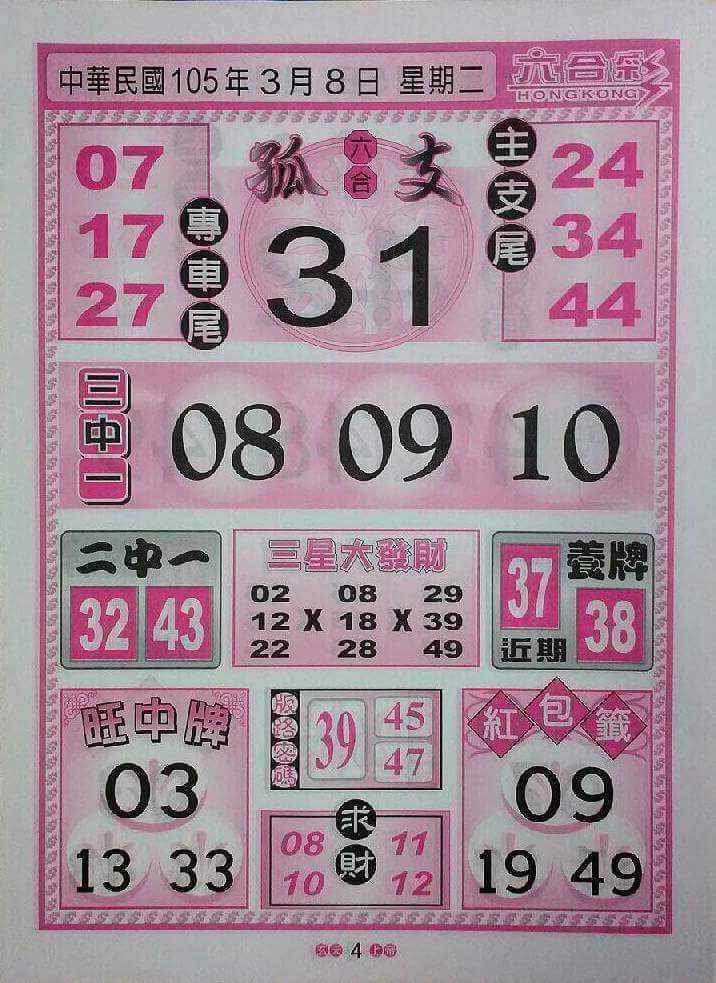 今彩539 2020/10/10 台北鐵報分享 供您參考