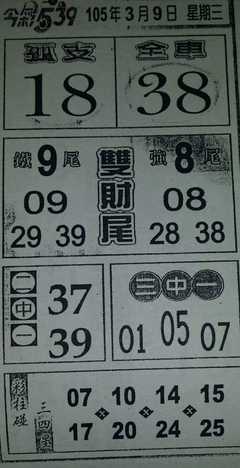 今彩539 2020/10/10 台北鐵報分享 供您參考