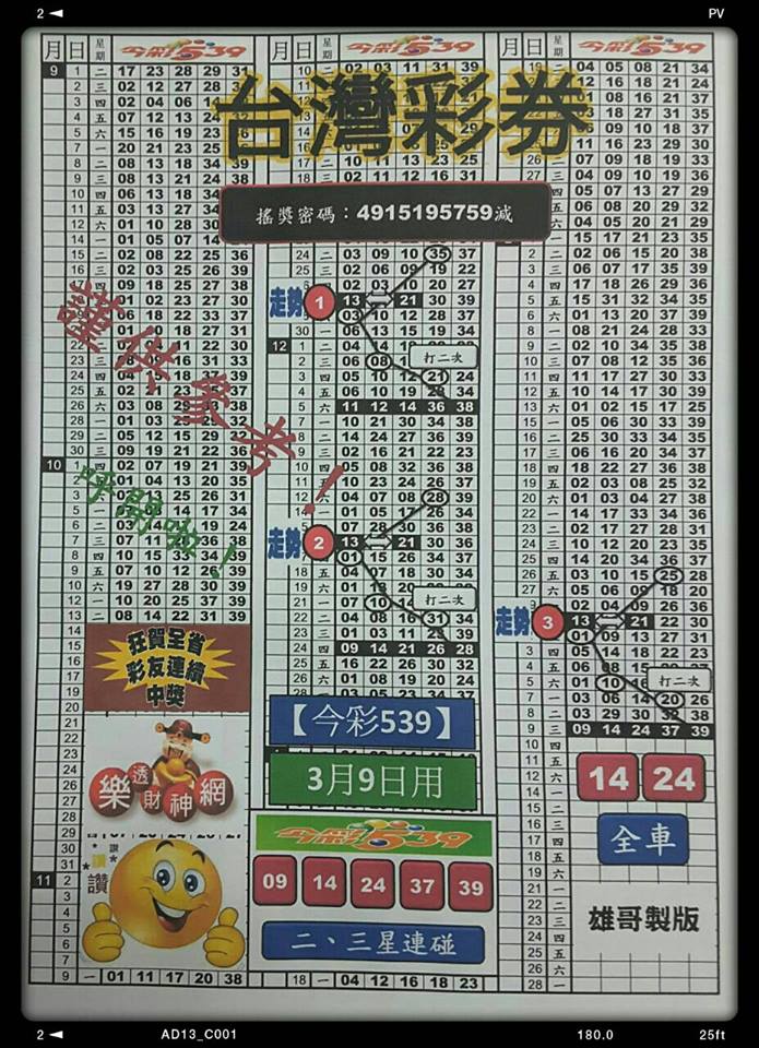 今彩539 2020/12/09 Usagi 精選3碼 全車 供您參考