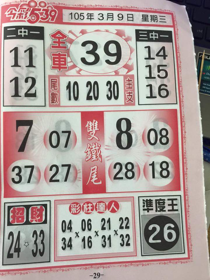 今彩539 2020/10/05 吉祥報分享 供您參考