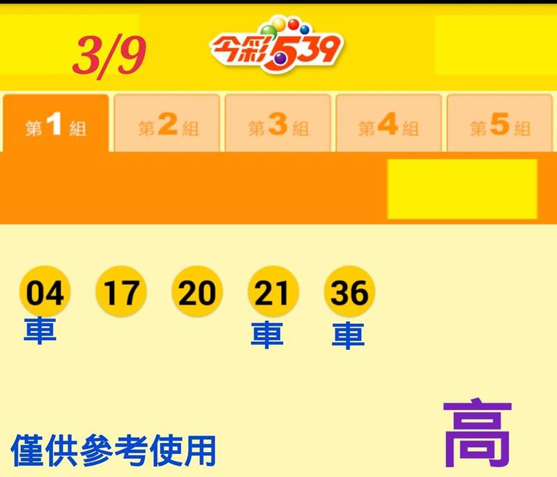 今彩539 2020/10/05 台北鐵報分享 供您參考