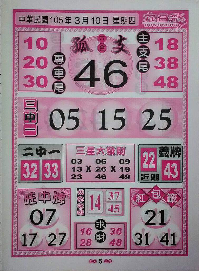 今彩539 2020/10/07 台北鐵報分享 供您參考