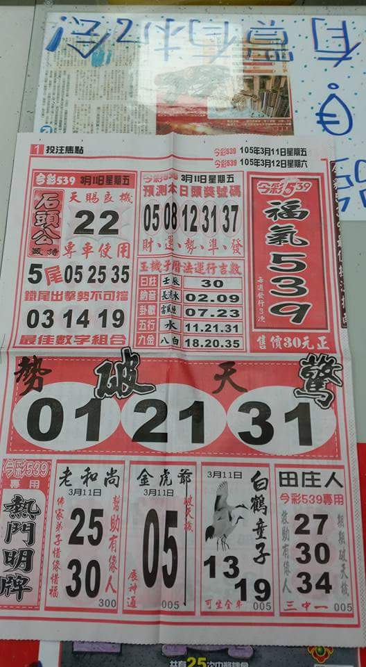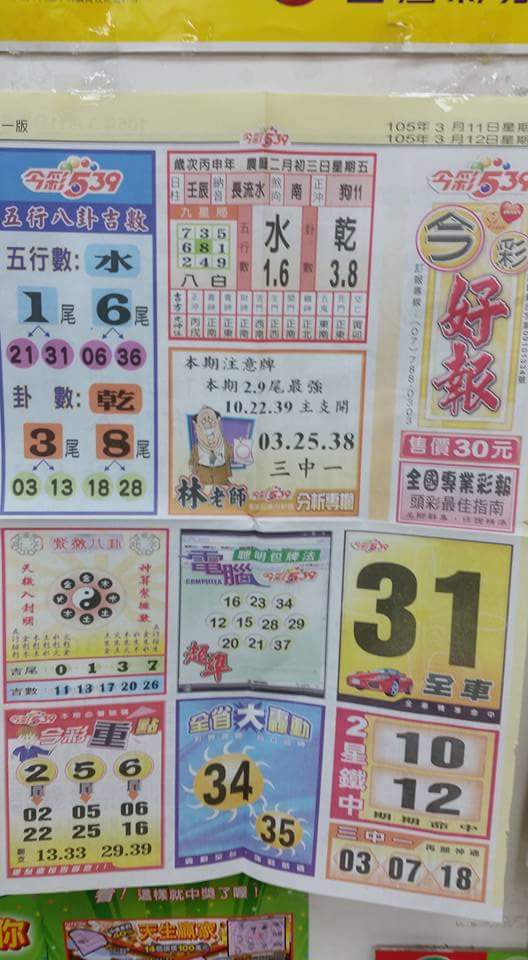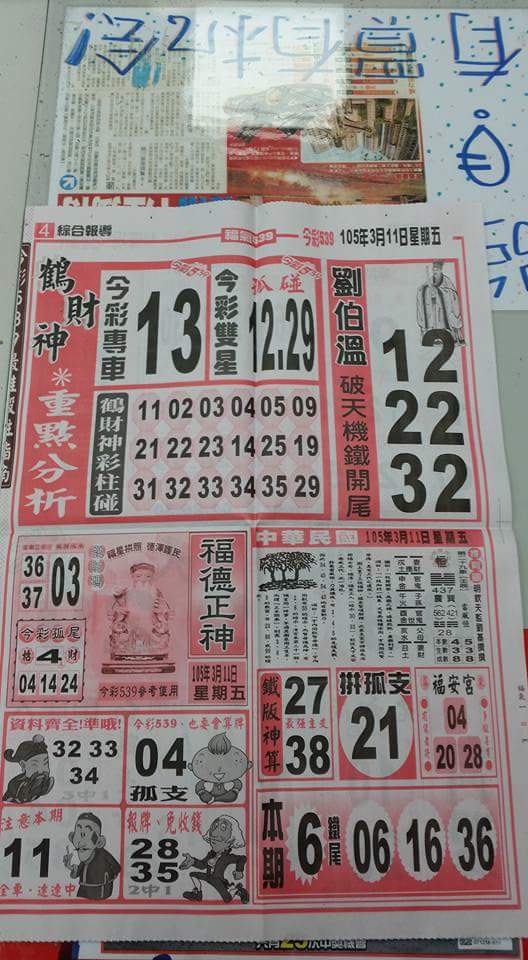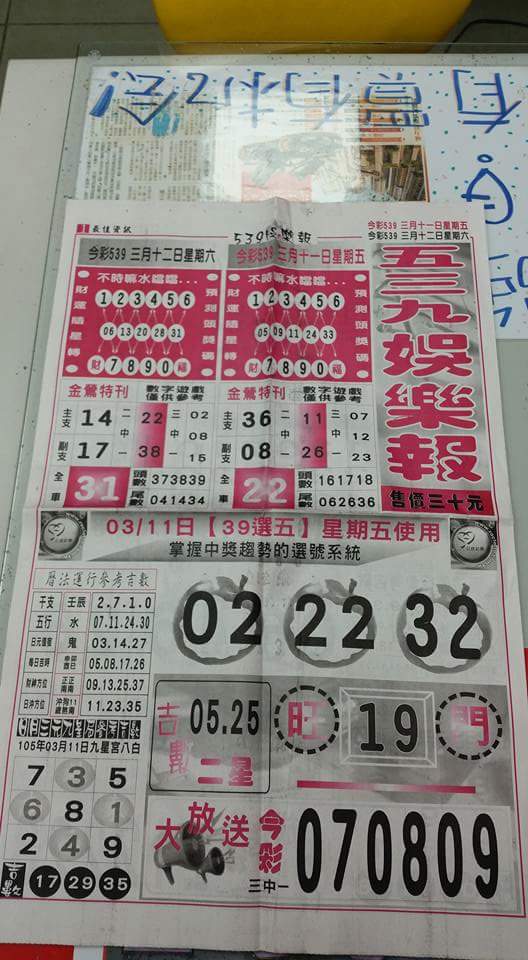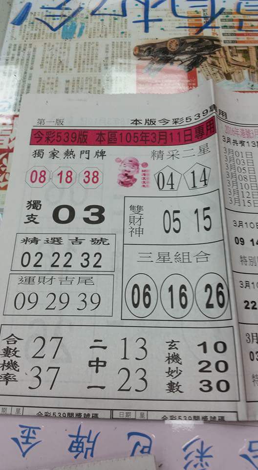 今彩539 2020/10/06 台北鐵報分享 供您參考
