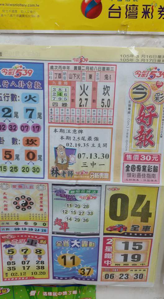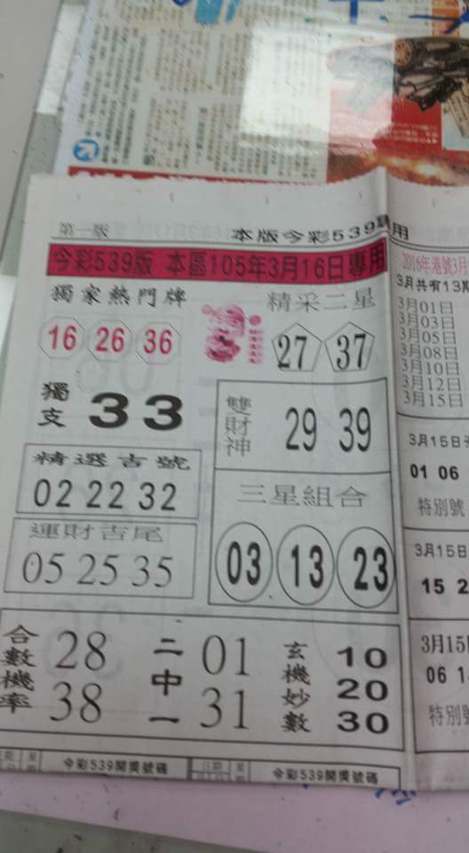 今彩539 2020/10/16 Usagi 精選2碼 全車 供您參考