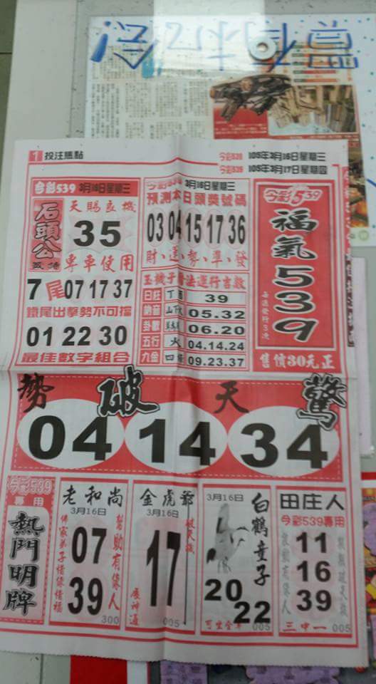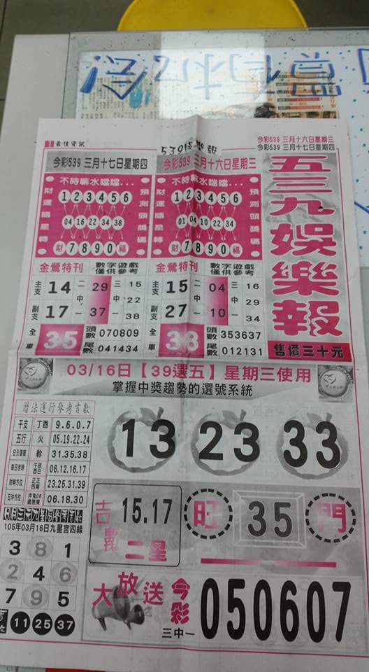 今彩539 2020/10/06 Usagi 九宮 精選低機號碼 供您參考