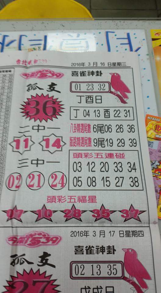 今彩539 2020/10/21 Usagi 精選獨支 全車 供您參考