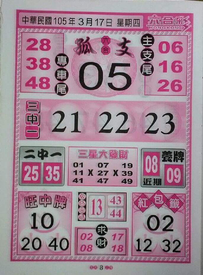 今彩539 2020/10/05 Usagi 九宮 精選低機號碼 供您參考