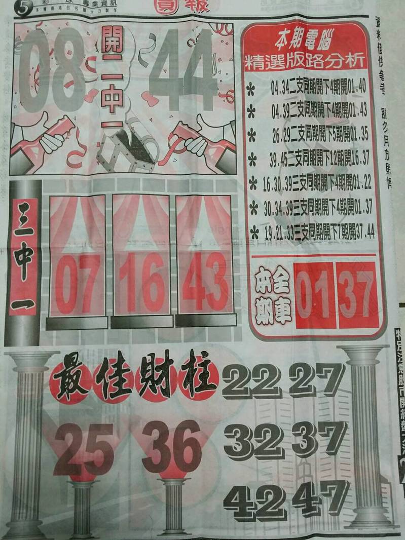 今彩539 2020/10/07 台北鐵報分享 供您參考
