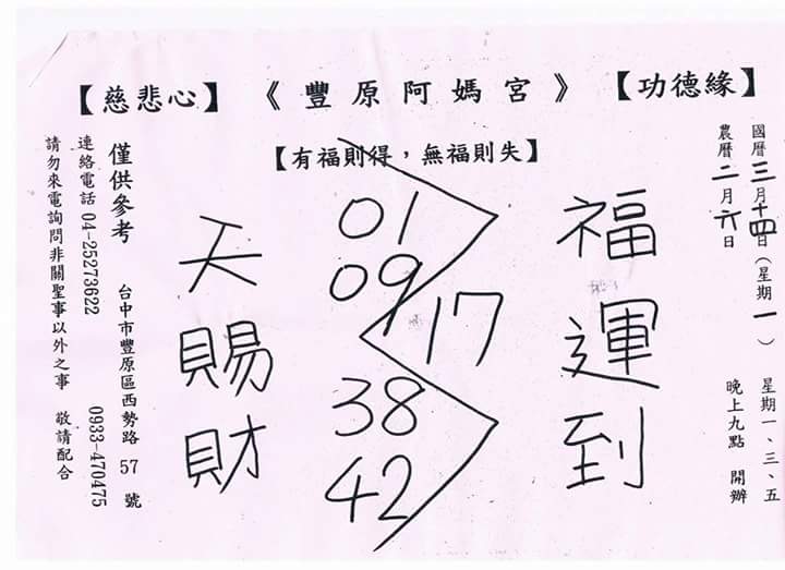 加州天天樂 2020/10/07 Usagi 九宮 精選低機號碼 供您參考