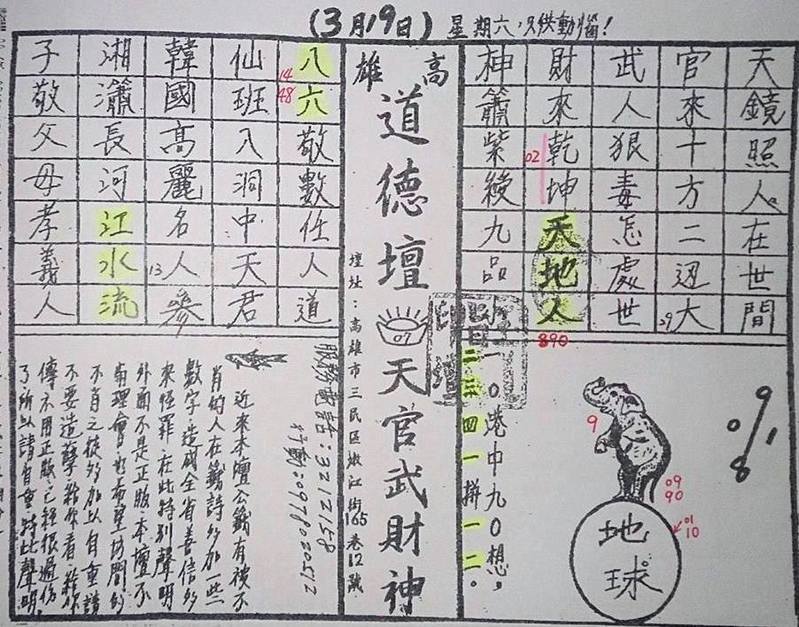 加州天天樂 2020/10/08 Usagi 九宮 精選低機號碼 供您參考