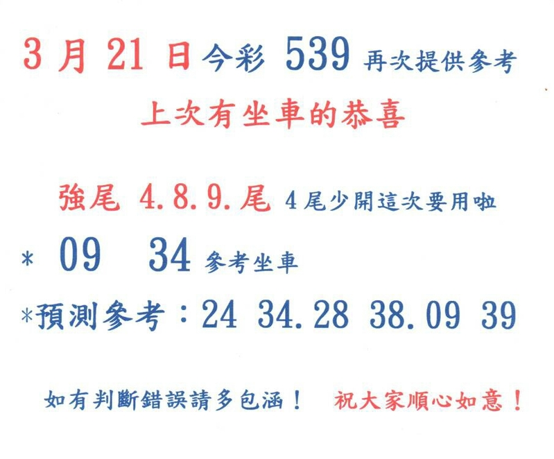 今彩539 2020/10/10 吉祥報分享 供您參考