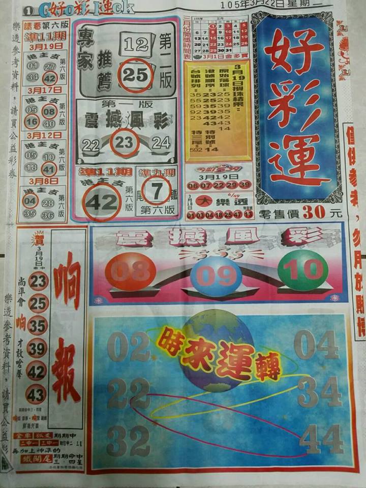 加州天天樂 2020/10/07 Usagi 九宮 精選低機號碼 供您參考