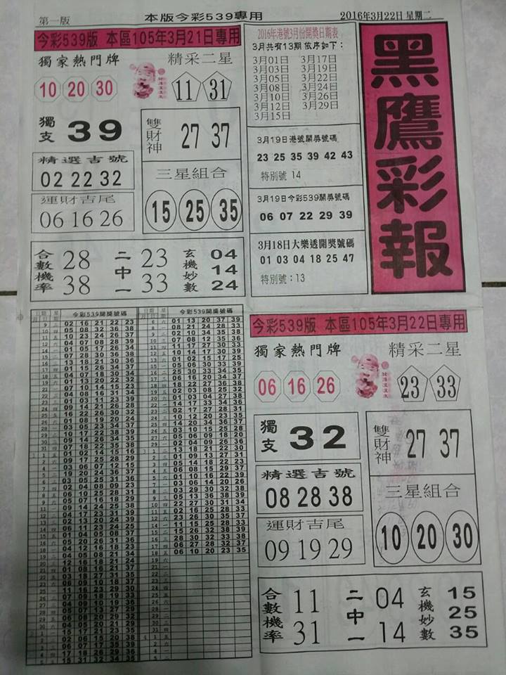 今彩539 2020/11/17 Usagi 精選3碼 全車 供您參考