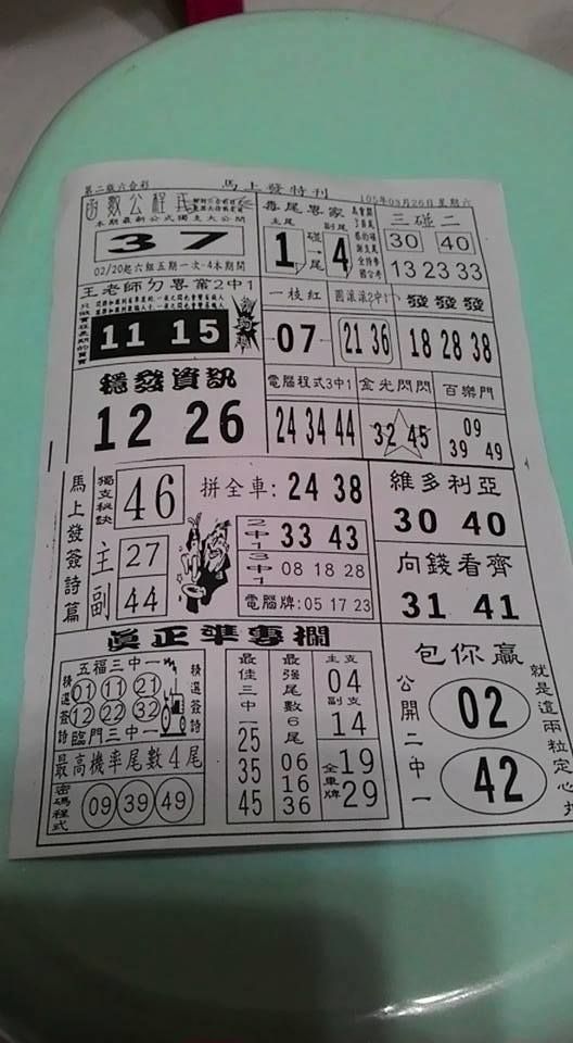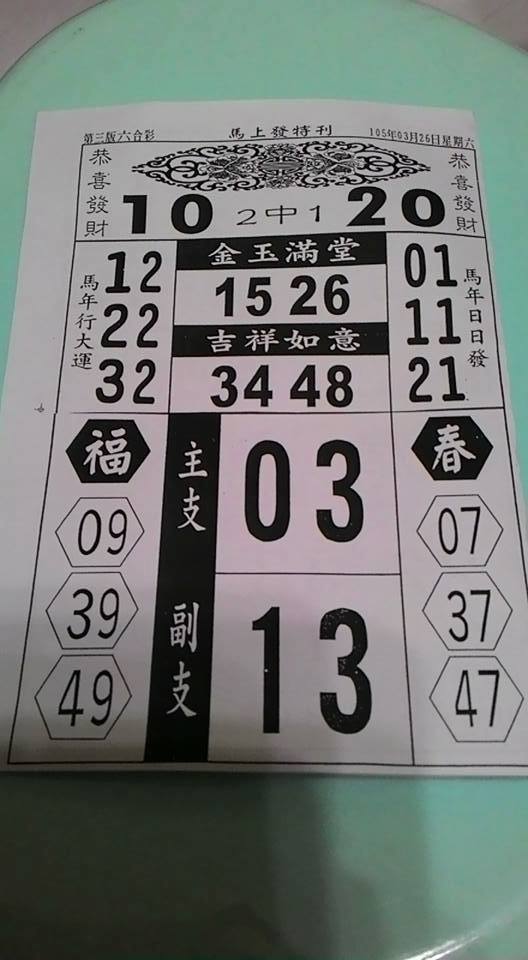 今彩539 2020/10/07 台北鐵報分享 供您參考