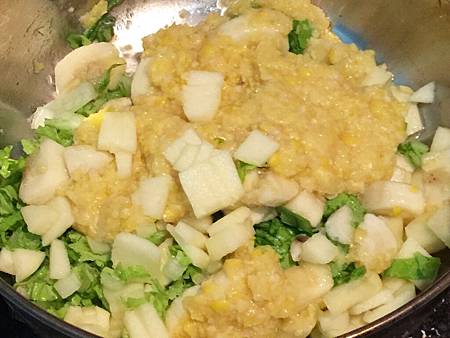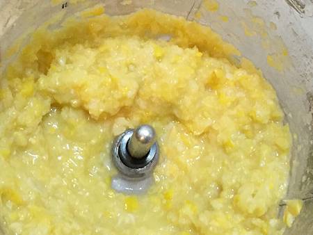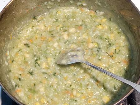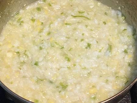 注意:玉米這次先打過,果真比較順!另外因為是甜鮮的水果粥,所以我沒加高湯,媽媽我是那種甜鹹分明的主婦,哈哈。