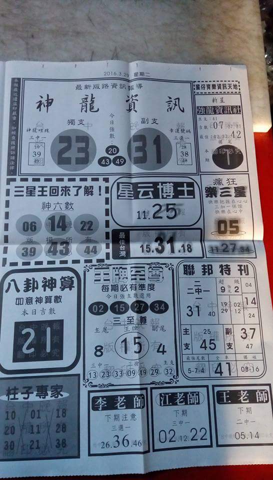 今彩539 2020/10/05 台北鐵報分享 供您參考