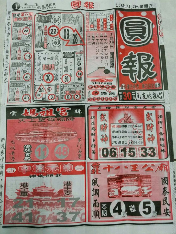 今彩539 2020/10/06 吉祥報分享 供您參考