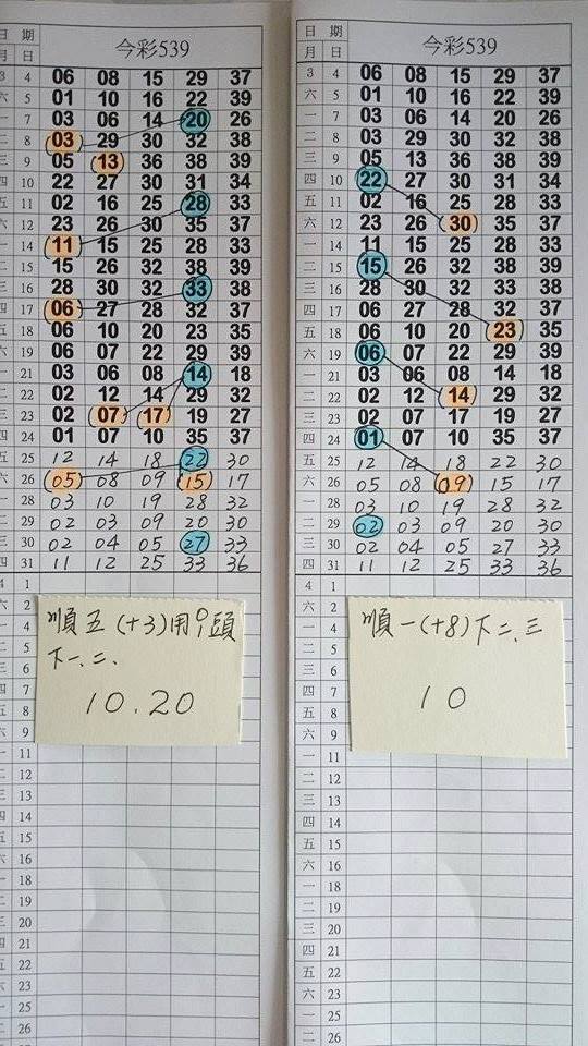 今彩539 2020/11/06 Usagi 精選獨支 全車 供您參考