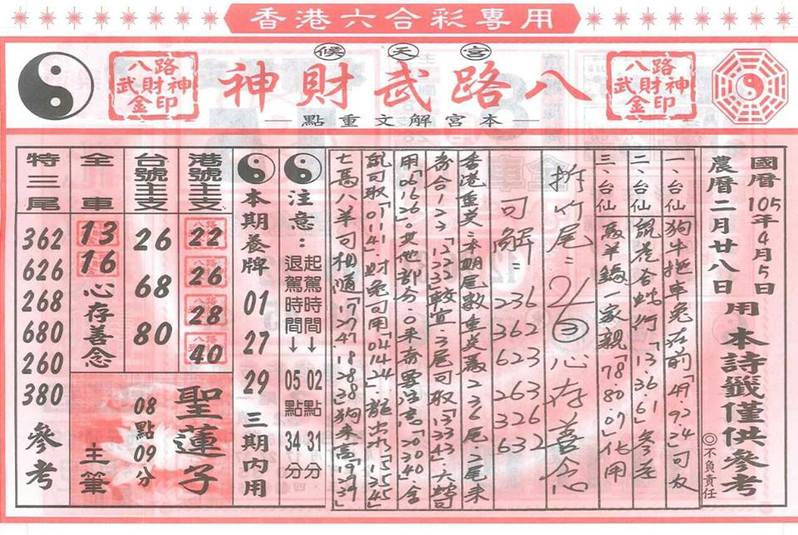 今彩539 2020/10/06 台北鐵報分享 供您參考