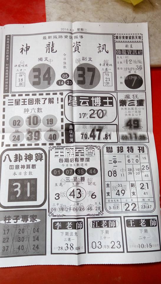 今彩539 2020/10/06 Usagi 九宮 精選低機號碼 供您參考