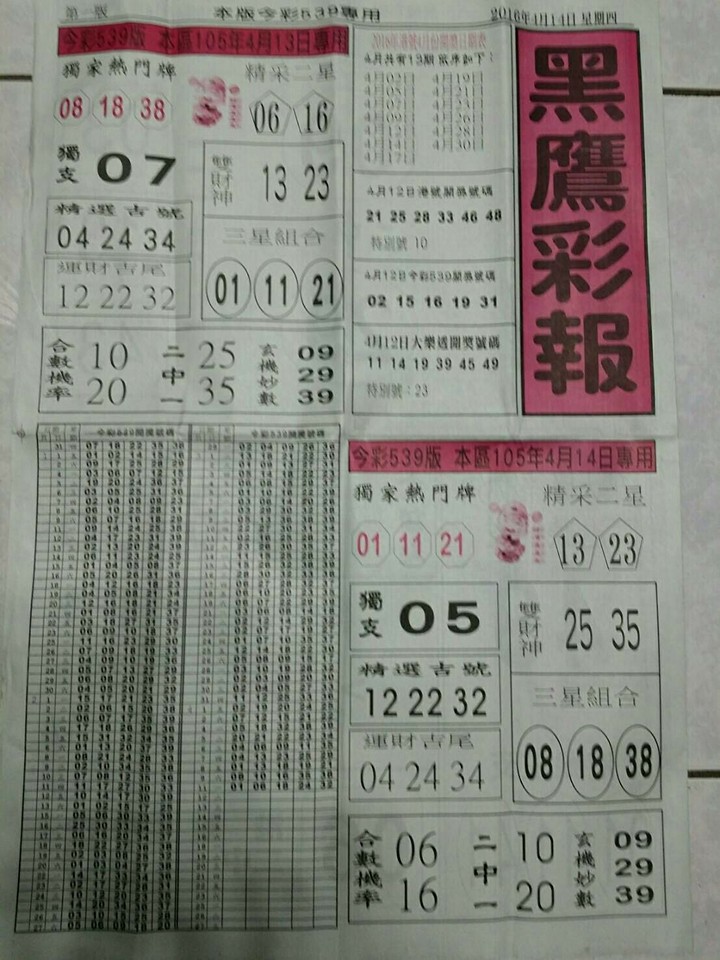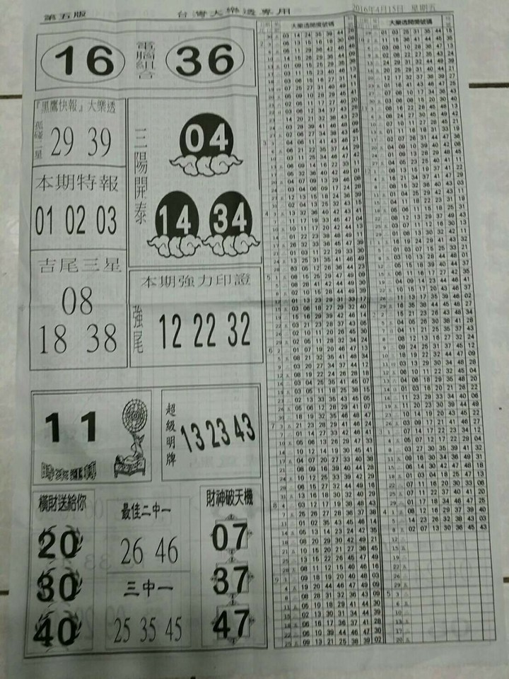 今彩539 2020/10/06 台北鐵報分享 供您參考