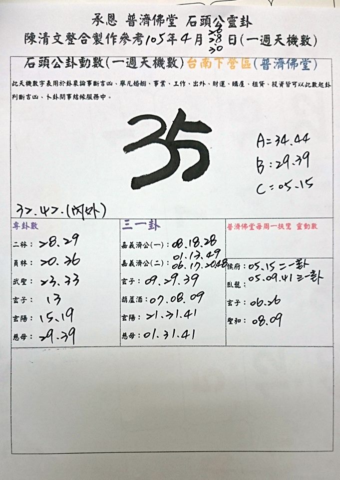 今彩539 2020/10/07 吉祥報分享 供您參考