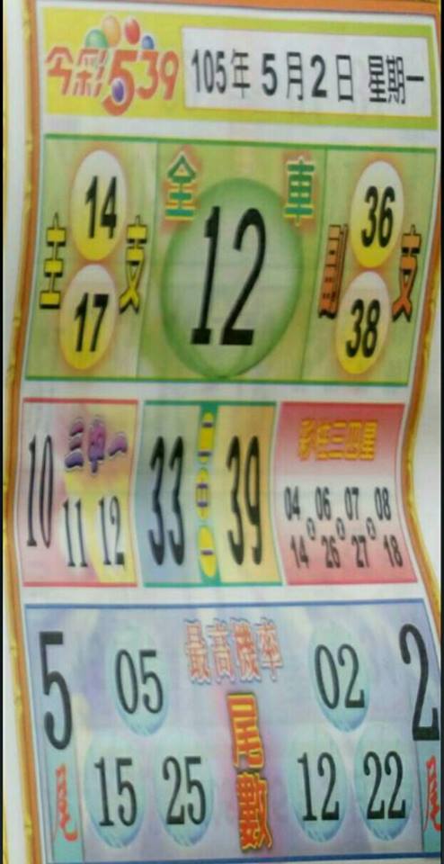 今彩539 2020/10/05 台北鐵報分享 供您參考