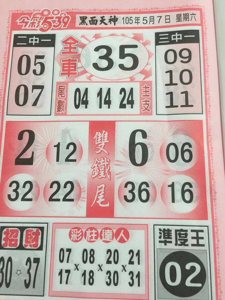 今彩539 2020/12/05 Usagi 精選獨支 全車 供您參考
