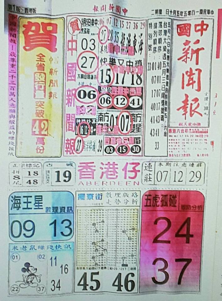 今彩539 2020/10/07 台北鐵報分享 供您參考