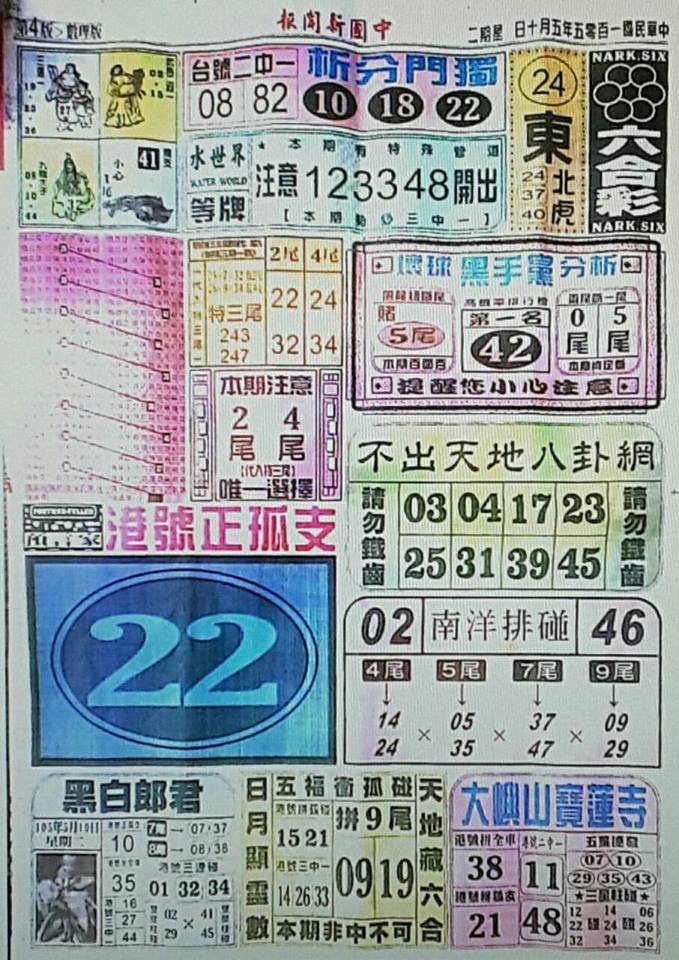 今彩539 2020/10/10 台北鐵報分享 供您參考