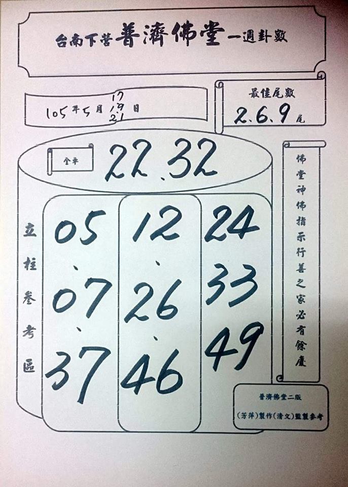 今彩539 2020/10/06 吉祥報分享 供您參考