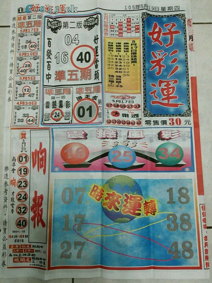 今彩539 2020/10/05 吉祥報分享 供您參考