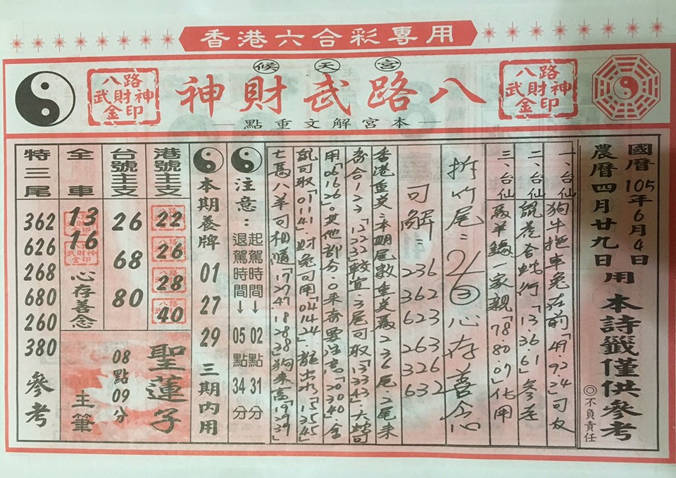 今彩539 2020/10/06 吉祥報分享 供您參考