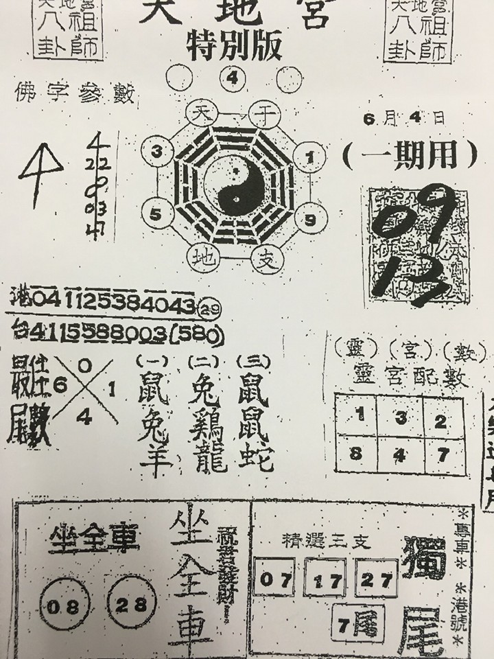 加州天天樂 2020/09/30 Usagi 九宮 精選低機號碼 供您參考