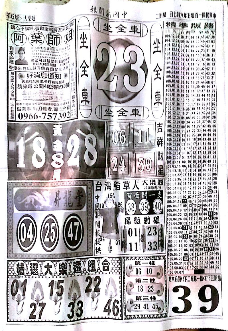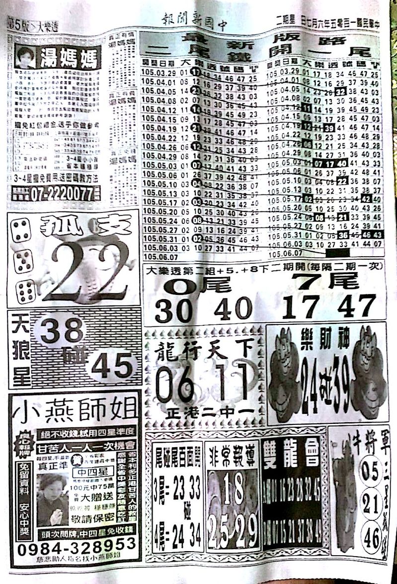 今彩539 2020/10/05 台北鐵報分享 供您參考